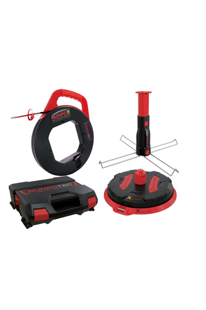 Profesjonalny zestaw RUNPO to kompletny system przeznaczony do szybkiego i wygodnego przeciągania przewodów oraz organizacji pracy instalacyjnej. Połączenie spirali RUNPO w kasecie, rozwijaka kablowego XB300, trzpienia montażowego oraz solidnej walizki transportowej tworzy kompleksowe rozwiązanie dla elektryków, instalatorów oraz ekip budowlanych.
