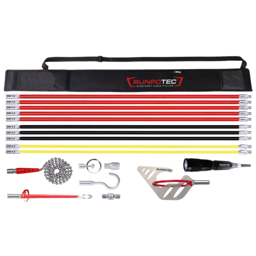 RUNPOTEC RUNPOSTICKS Comfort 10 m – profesjonalny zestaw do przeciągania kabli 19 elementów