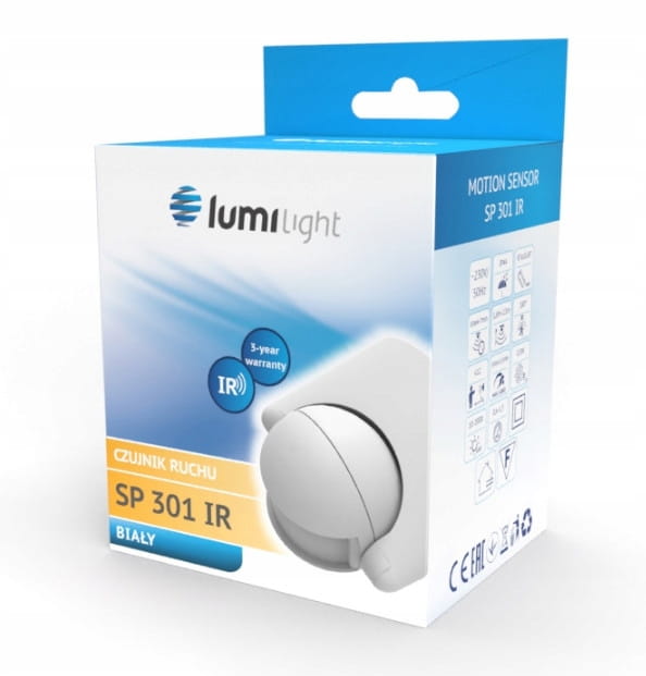 CZUJNIK RUCHU NADTYNKOWY ŚCIENNY 180° BIAŁY SP 301 LL5443