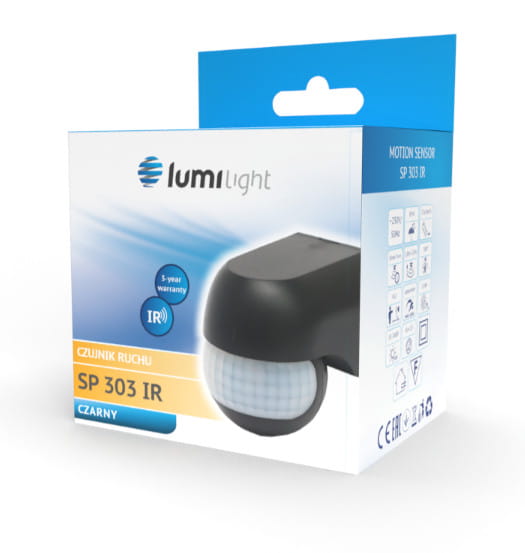 CZUJNIK RUCHU NADTYNKOWY ŚCIENNY 180° CZARNY SP 303 LL5399