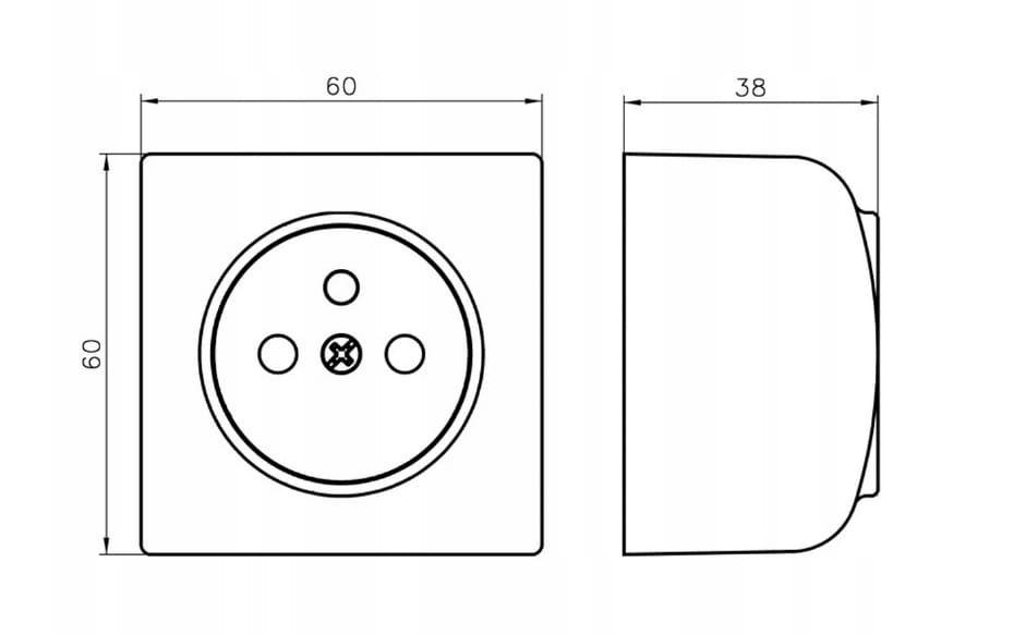 - Wymiary (szer. × wys. × gł.): 60×60×38 mm