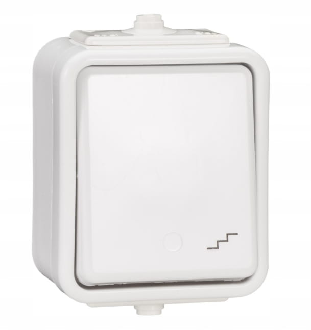 - Łącznik schodowy charakteryzuje się podwyższonym stopniem ochrony IP44. Jest to produkt kompletny.