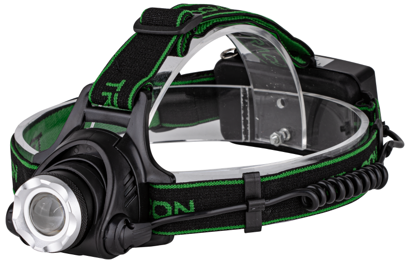 Regulacja ogniskowej (Zoom) umożliwia dopasowanie szerokości wiązki światła — od szerokiego oświetlenia otoczenia po skupiony strumień dalekiego zasięgu. Konstrukcja czołowa pozostawia wolne ręce, zwiększając wygodę i bezpieczeństwo pracy.