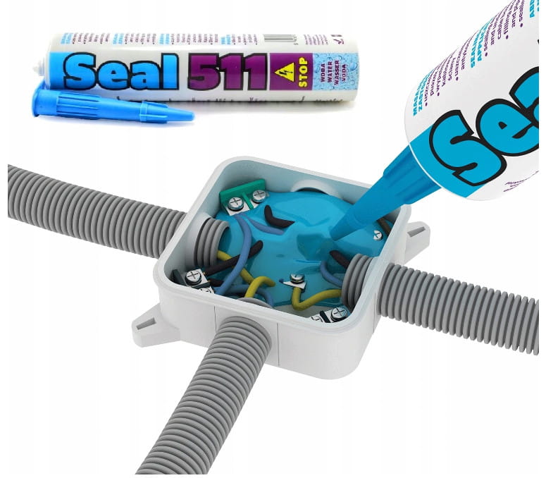 - Uszczelnianie i wypełnianie puszek w zewnętrznych i podziemnych instalacjach elektrycznych, teletechnicznych, przewodów w peszlach i rurach ochronnych itp.