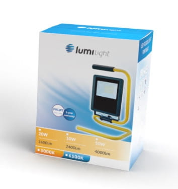 Naświetlacz LED z diodami typu SMD marki Philips, wodoodporny, bez czujnika ruchu pir, na uchwycie przenośnym. Dostępny w barwie ciepłej lub zimnej.