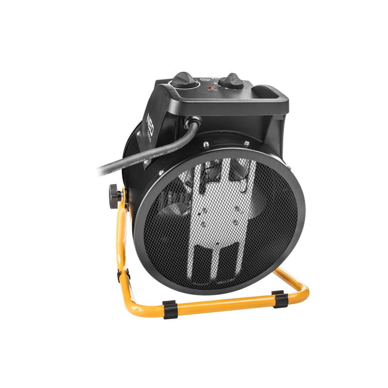 Nagrzewnica elektryczna ceramiczna PTC 5 kW 90-064 marki NEO o mocy 5 kW, wyposażona w termostat i przełącznik regulacji mocy. Posiada wentylator o przepływie powietrza 588 m3/h. Generuje niski poziom hałasu i nie pobiera dużo energii, charakteryzując się odpowiednią wydajnością. Regulowany kąt ustawienia oraz mocna i trwała konstrukcja zwiększają możliwości urządzenia oraz wpływają na komfort jego użytkowania. Ceramiczny element grzewczy cechuje się także długą żywotnością. Nagrzewnica marki NEO polecana jest do takich pomieszczeń jak garaże, gospodarstwa domowe, warsztaty i sklepy. Posiada wymiary 340 x 242 x 300 mm. Ten produkt jest odpowiedni tylko do sporadycznego użytku lub do stosowania w dobrze izolowanych pomieszczeniach.