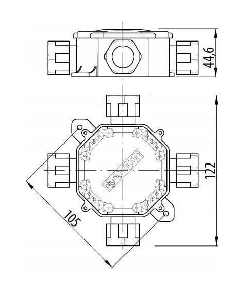 - Wymiary zewnętrzne (dł. x szer. x gł.): 122 x 122 x 44,6mm
