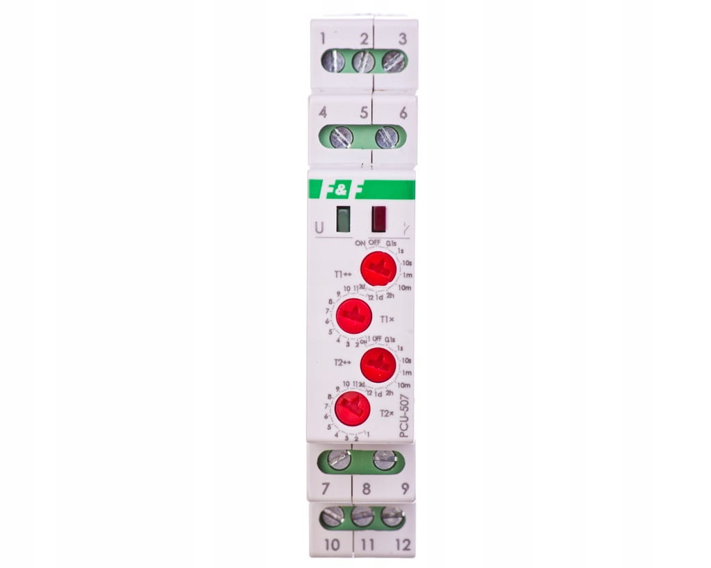Po podaniu napięcia zasilającego styki pozostają w pozycji 2-3 i 11-10 przez czas t1. Po odmierzeniu czasu t1 następuje przełączenie styków w pozycję 2-1 i 11-12 na czas t2. Po czasie t2 styki przekaźnika powracają do pozycji 2-3 i 11-10. Sekwencja tych przełączeń realizowana jest cyklicznie.
