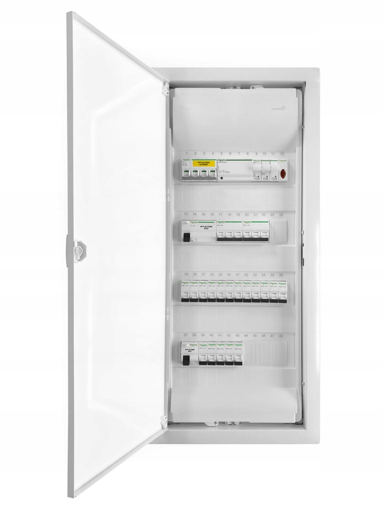 Rozdzielnica Hager Volta VU48NE – duża podtynkowa rozdzielnia 5-rzędowa