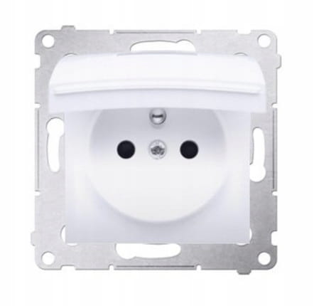 SIMON 54 GNIAZDO POJEDYNCZE BIAŁE Z KLAPKĄ BIAŁĄ IP 44