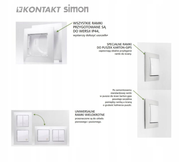 - Dodatkowe informacje - produkt wymaga dokupienia ramki z serii Simon 54