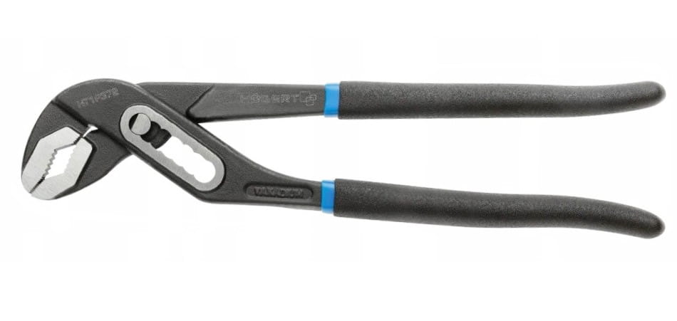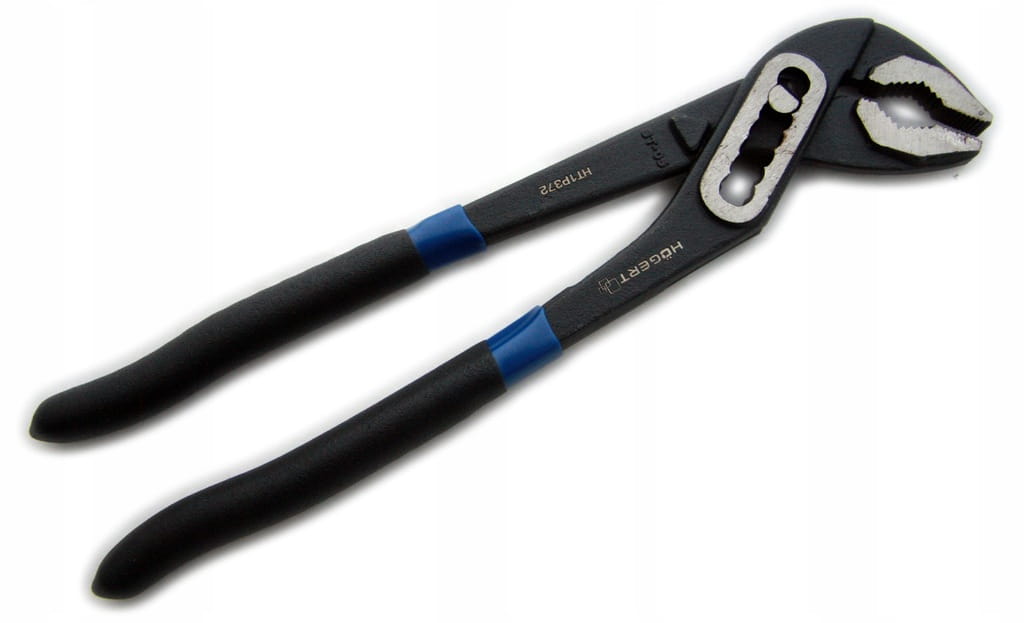 Szczypce do prac hydraulicznych i montażowych. Rękojeść pokryta tworzywem umożliwiająca pewny, wygodny chwyt i operowanie szczypcami.