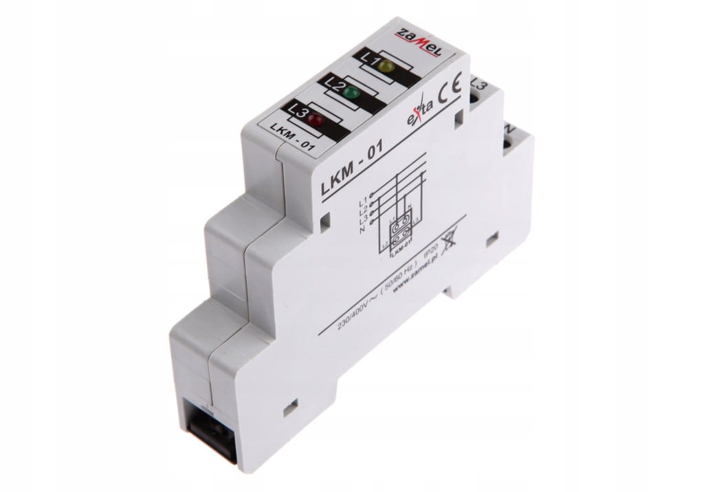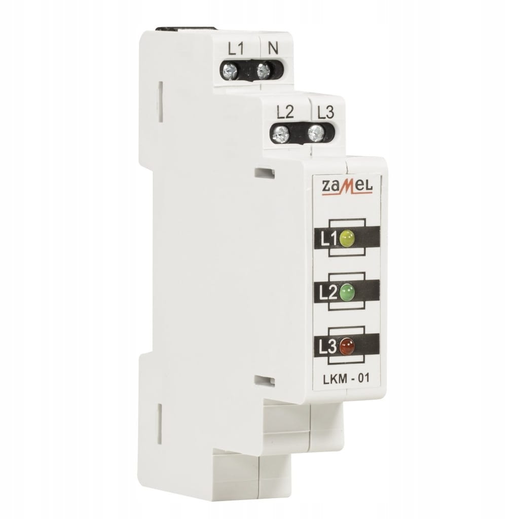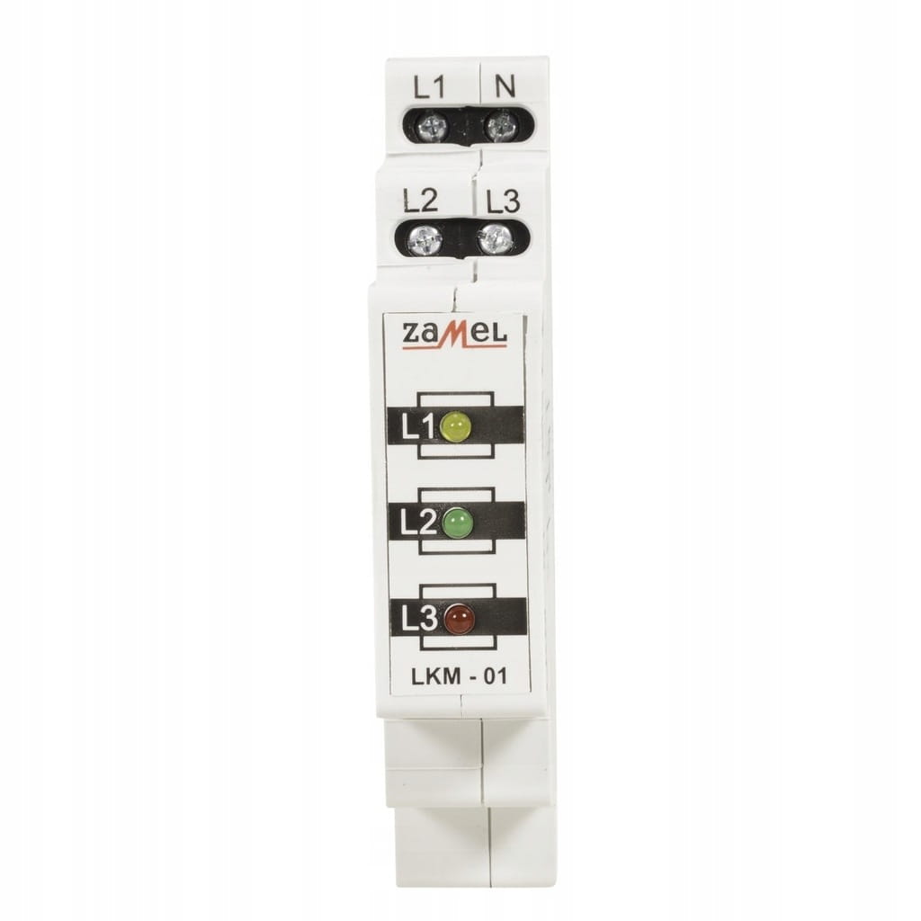 Wskazuje optycznie wartość napięcia przy pomocy trzech zintegrowanych diod LED, oznaczonych jako L1, L2, L3, w kolorach czerwonym, zielonym i żółtym. Lampka modułowa, może być zastosowany w sieci TNC, uwzględniającej punkt zerowy. Lamka modułowa posiada znamionowe napięcie o wartości 230 V AC. Znamionowy pobór prądu wynosi 2,8 mA.
