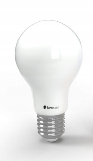 Żarówka LED z trzonkiem E27 odpowiednik żarówki tradycyjnej o takim samym trzonku. A60 oznacza kształt żarówki tradycyjnej. Zasilana napięciem 230V przemiennym. Dostępna o mocy 8,5W w barwie ciepłej.
