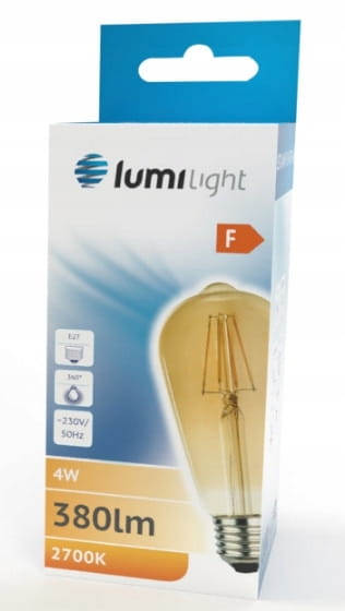 Żarówka LED E27 4W filament GOLD CIEPŁA