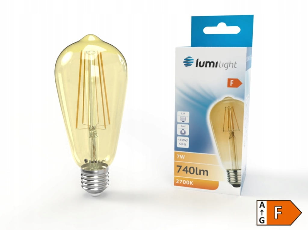 Żarówka LED E27 7W filament Edison CIEPŁA