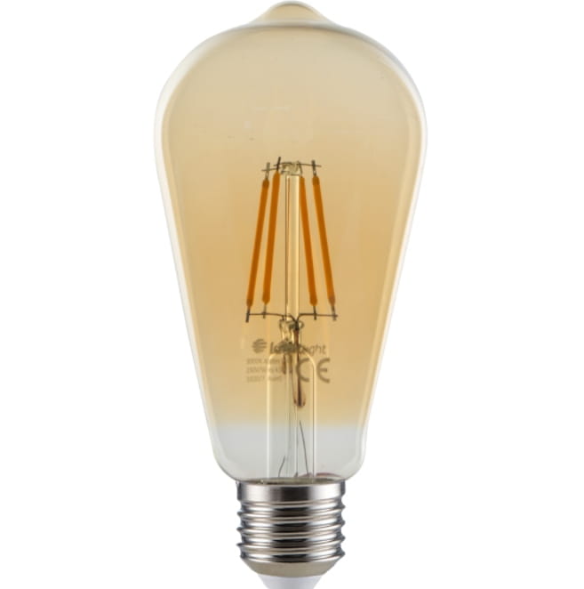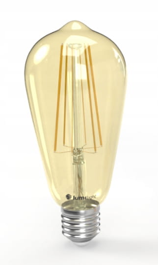Ozdobna żarówka LED ST64 z trzonkiem E27. Diody LED w kształcie włókien – filamentów. Zasilana napięciem 230V przemiennym. Dostępna o mocy 7W w barwie ciepłej.