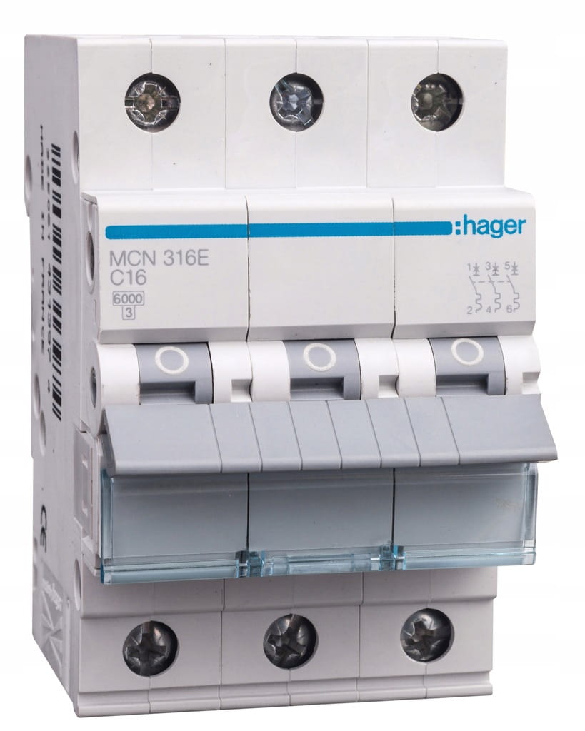 Wyłącznik nadprądowy Hager MCN316E C16 to wysokiej jakości aparat zabezpieczający instalację elektryczną przed skutkami zwarć oraz przeciążeń. Dzięki charakterystyce C i znamionowemu prądowi 16 A urządzenie efektywnie reaguje zarówno na krótkotrwałe przeciążenia, jak i nagłe skoki prądu, co czyni je idealnym wyborem do obwodów z umiarkowanym prądem rozruchowym (np. silniki, transformatory, obwody gniazdowe).